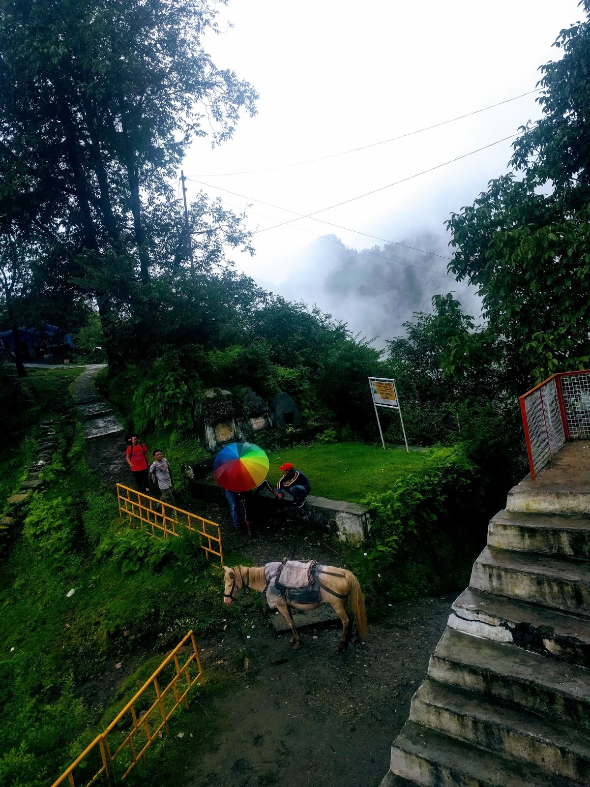 Started at 5.30am and arrived by 12pm. It rained whole day and made path slippery. Got up at 3.30am..bed tea was served at 4am and we left at 5.30am after having Bournvita milk. I was motivated to complete yatra on foot.Enroute we had breakfast of chana and pooris. Last 2 hours it rained heavily but we did not stop. I just kept moving..no pain or breathing problems..just enjoying all vistas, fog and clouds. Got my luggage finally and had a hot shower, changed my clothes and had lunch. We might not get our luggage tomorrow so it's advisable to carry all essentials in backpack you carry. If road is in good condition, jeep goes till Gala.