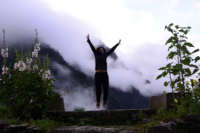 Next stop was Lamari and we were served tea and snacks by ITBP. KMVN guest house is perched on top and absolutely beautiful. Towards last 2 kms, I had severe shooting pain in my ankle and with grit and determination was able to reach campsite. Budhi campsite was spectacular. Myraid flowers, fog and quaint village. I was finally able to talk with my mother, but couldn't reach my husband and missed him. I hoped that my legs would be better the next day and recovered for another long day.
