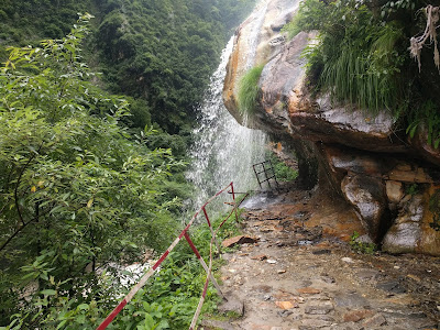 After reaching base of river Kali I reached breakfast point. I had aloo nutree and pooris and ventured ahead with my porter. It was raining like crazy. One has to cross numerous waterfalls whose flow increases in rainy season and thankfully my porter was carrying an umbrella. It is not a bad idea to carry an umbrella during rainy season. Poncho also comes handy.